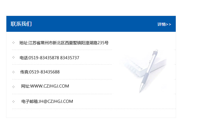 傳真:0519-83435688    郵編:213135    網址:WWW.czjhgj_com.langchuanjingguan.com    電子郵箱:JH@czjhgj_com.langchuanjingguan.com